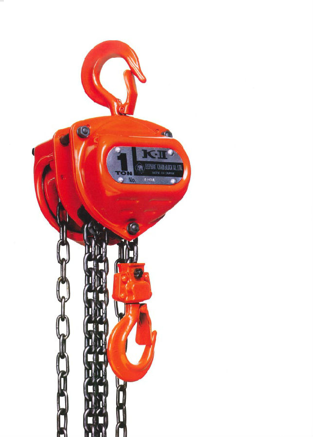 象牌K-II手拉葫蘆以適應(yīng)時(shí)代的需要,技術(shù)的概念!象印自己的四個(gè)定位銷結(jié)構(gòu) 、強(qiáng)大的起重鏈條斷裂應(yīng)力900MPa左右、 靜電粉末噴涂整體。車(chē)身框架 軸承結(jié)構(gòu)及高精度齒輪、 導(dǎo)鏈有效阻擋異物的侵入、機(jī)械制動(dòng)可靠、防御雨水,灰塵在雙封面、鎖存器支架和追求安全性和可操作性的上下掛鉤、鏈螺栓通知的界限取降。