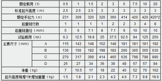 HSZ-V型手拉葫蘆技術(shù)參數(shù):