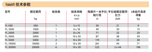 Yalelift360手拉環(huán)鏈葫蘆技術(shù)參數(shù)圖: