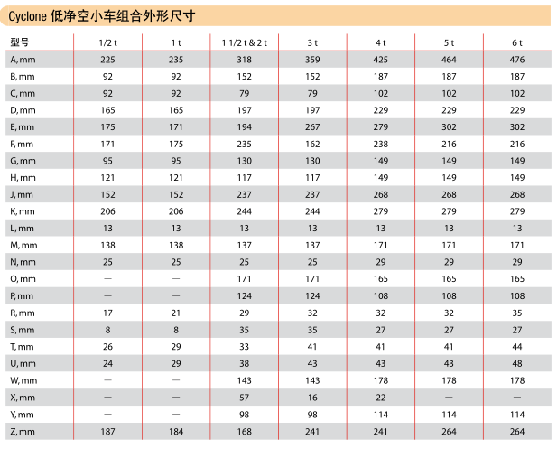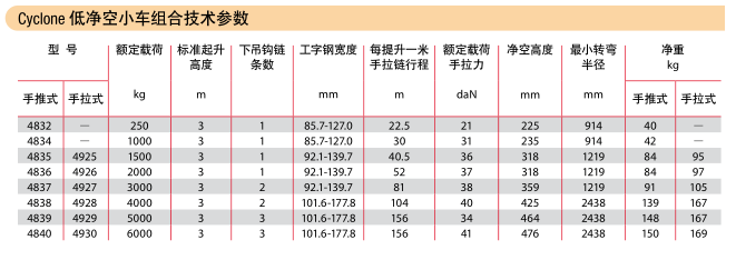 Cyclone小車組合技術(shù)參數(shù):