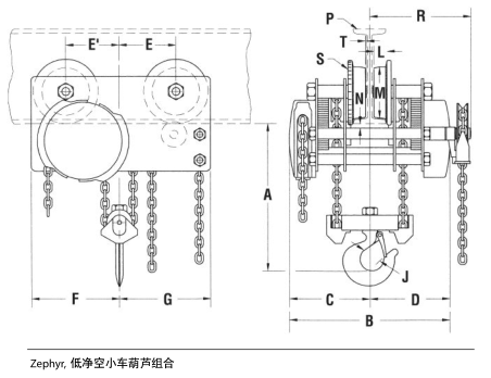 它的額定載荷1500-24000公斤,Zephyr低凈空小車組合環(huán)鏈葫蘆專為對凈空高度要求極高的應(yīng)用。低凈空葫蘆可以為特殊工字鋼定制,也可適用于各種軌道,標準工字鋼,寬型工字鋼等。此系列葫蘆綜合了Zephyr產(chǎn)品線重型級別部件的所有特性。