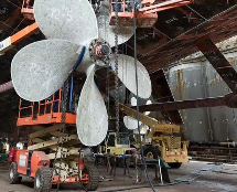 在拉動過程中,師傅眼神緊緊鎖定螺旋槳,根據(jù)其上升的狀態(tài),適時調(diào)整拉動的力度和速度。隨著螺旋槳不斷升高,逐漸達到合適的維修高度,師傅才停下手中動作,將葫蘆固定好,確保螺旋槳穩(wěn)穩(wěn)懸停,為后續(xù)的維修工作創(chuàng)造安全穩(wěn)定的條件。這看似簡單的手拉葫蘆起吊操作,實則凝聚著工人師傅們精湛的技藝與高度的責(zé)任心,保障著船廠螺旋槳維修工作的順利推進。